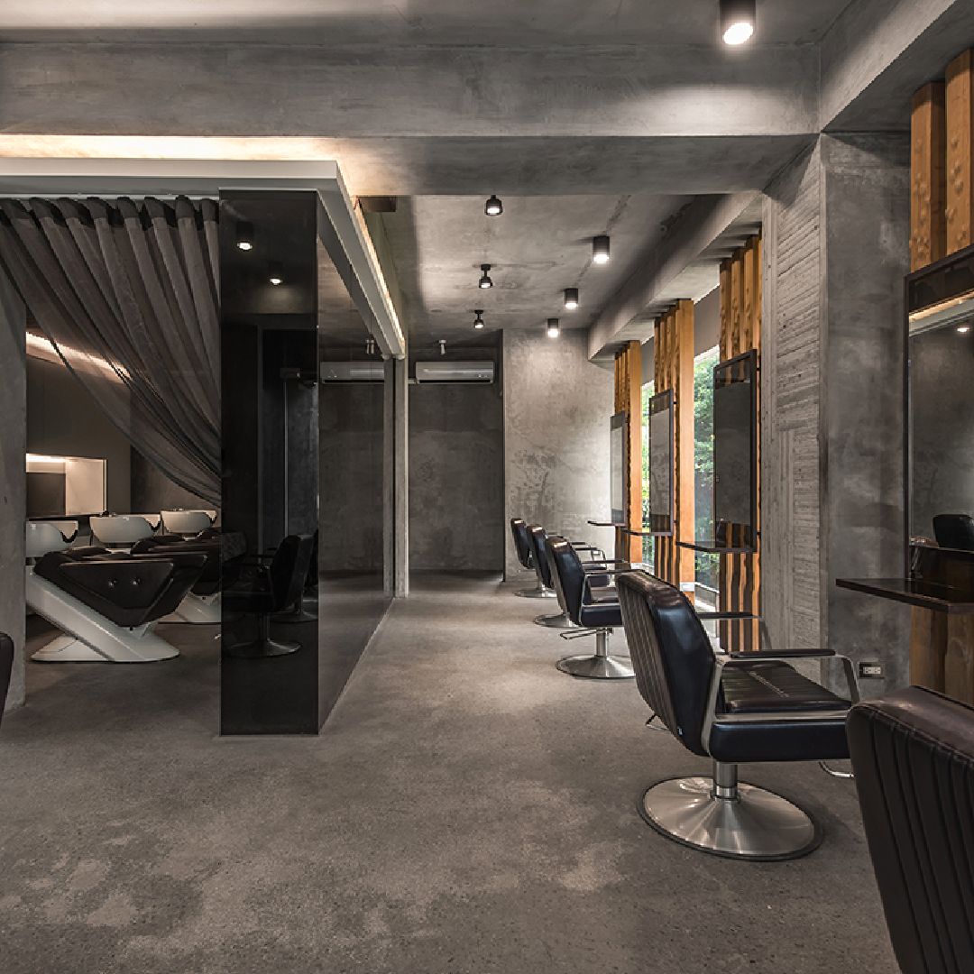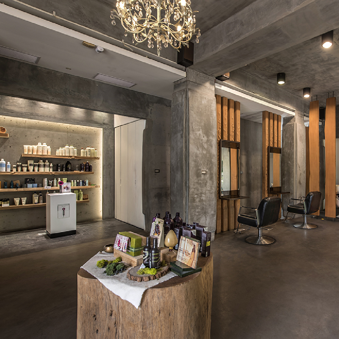 一棟矗立於紛擾街道上的灰色建築,靜靜散發出一股沈穩的氣息。 門前的一顆雞蛋花樹,隨風搖曳,水池水波粼粼。隨著踏石而入,推開大門,映入眼簾的是乾淨的線條、洗鍊的潔淨。清爽的空間卸下繁複的裝飾,只用綠化點綴空間,透過自然的光與影、陽光與空氣,營造出一種低調的人文氣息。而使用天然環保產品—AVEDA與綠建築的空間互相巧妙結合,讓人身、心、靈得到全然的放鬆。品髮亦,專注於人與空間環環相扣的親密對話,創造出一種自然純粹的美感。