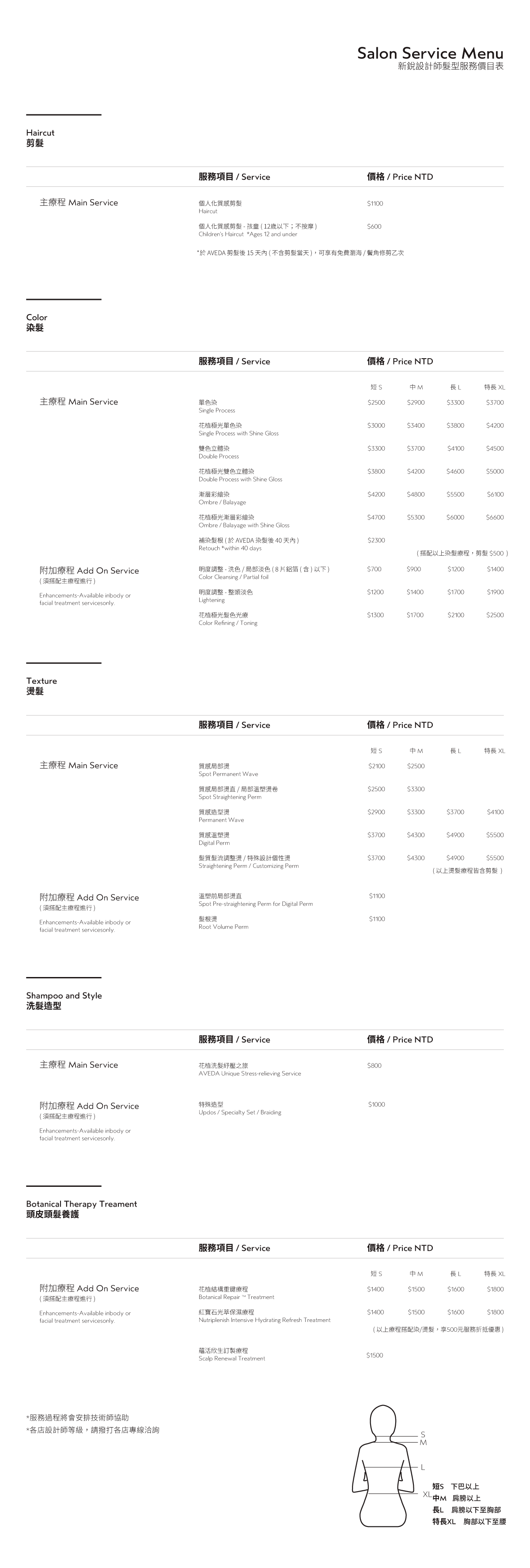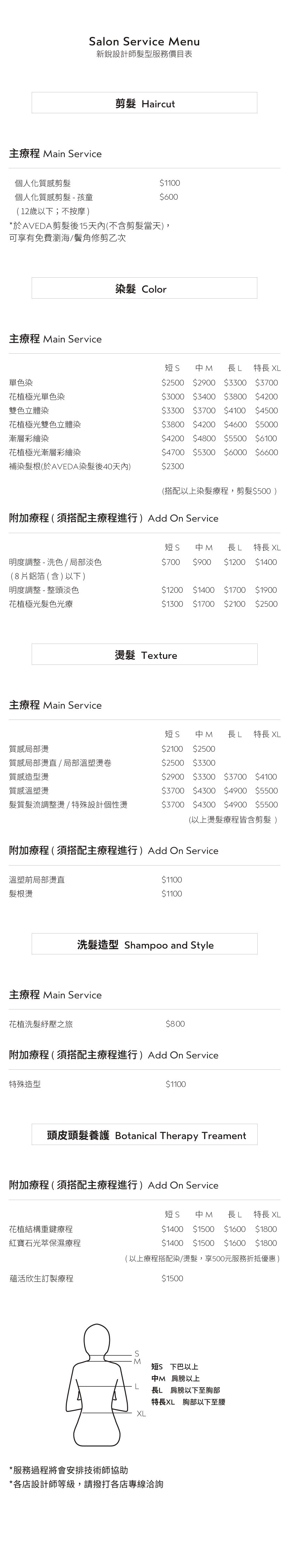 Salon價目表 - 新銳設計師