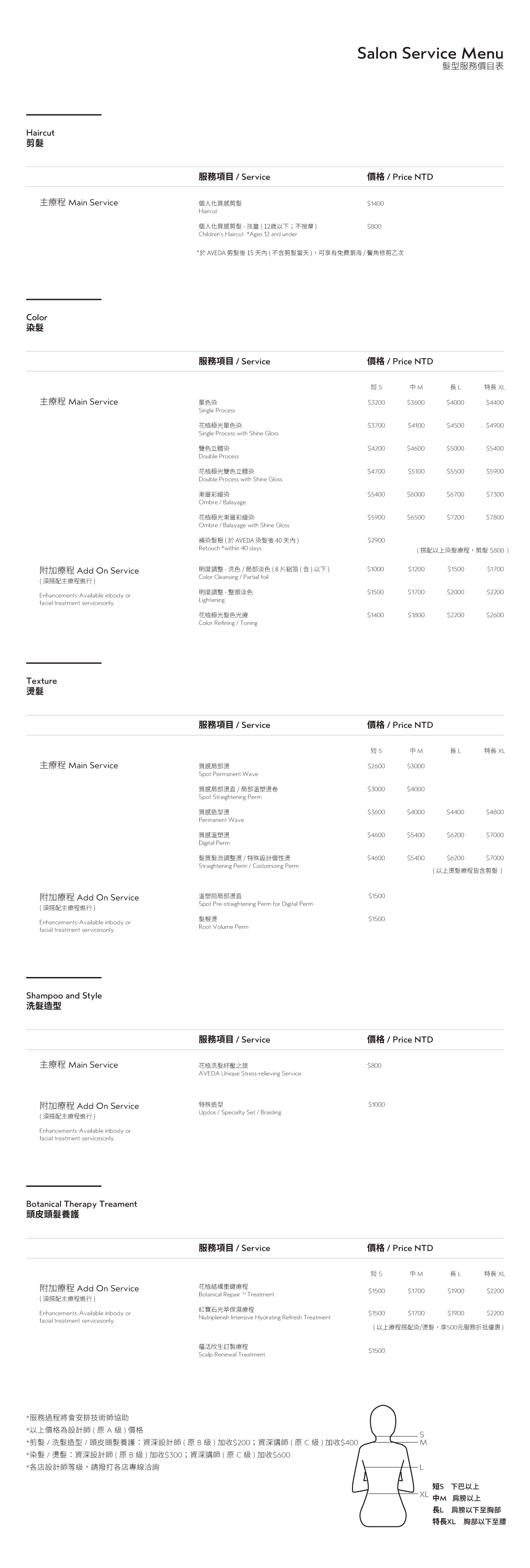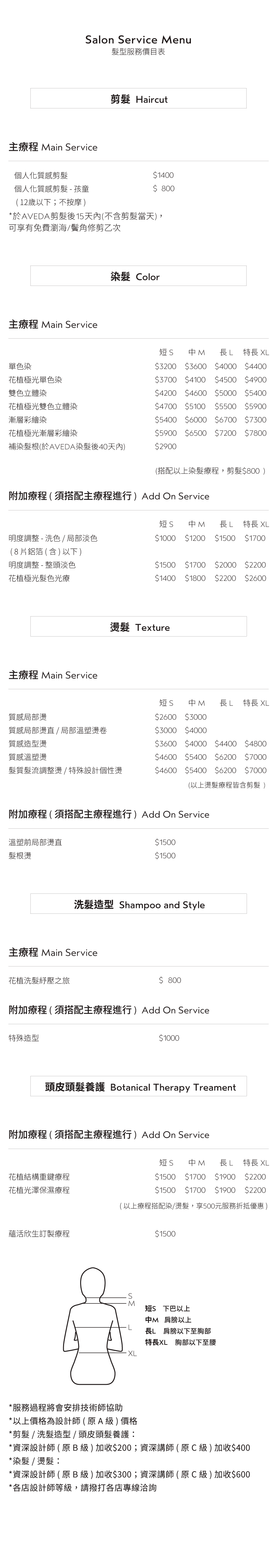 Salon價目表