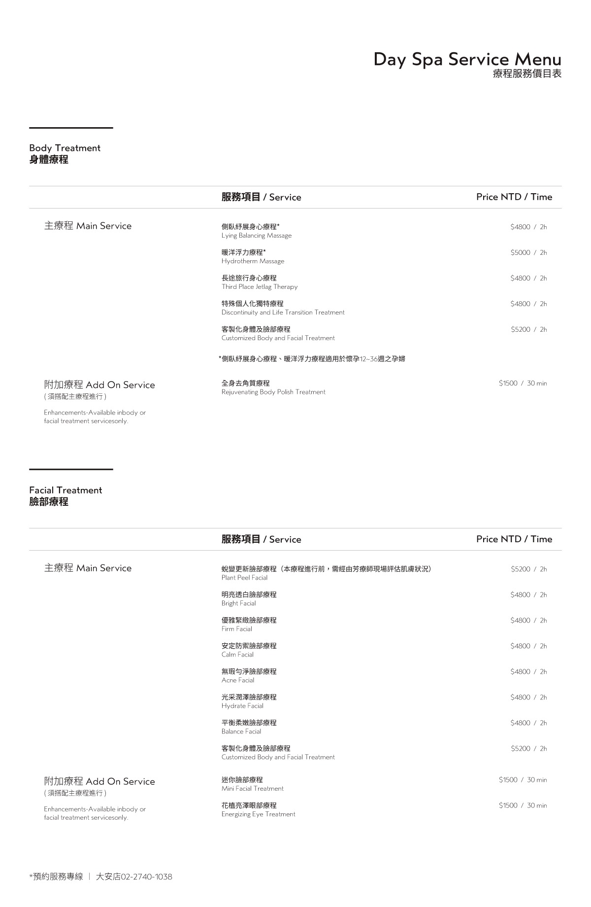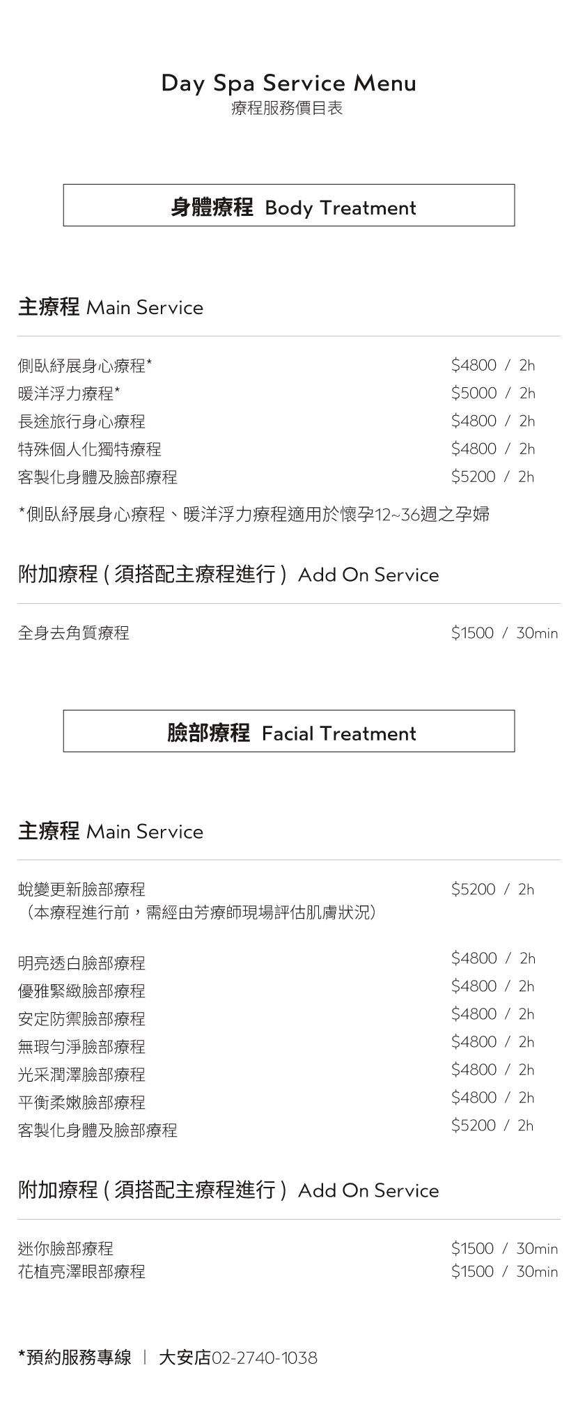 *您可自由選擇60分鐘身體按摩+30分鐘臉部保養 或 60分鐘臉部保養+30分鐘身體按摩。