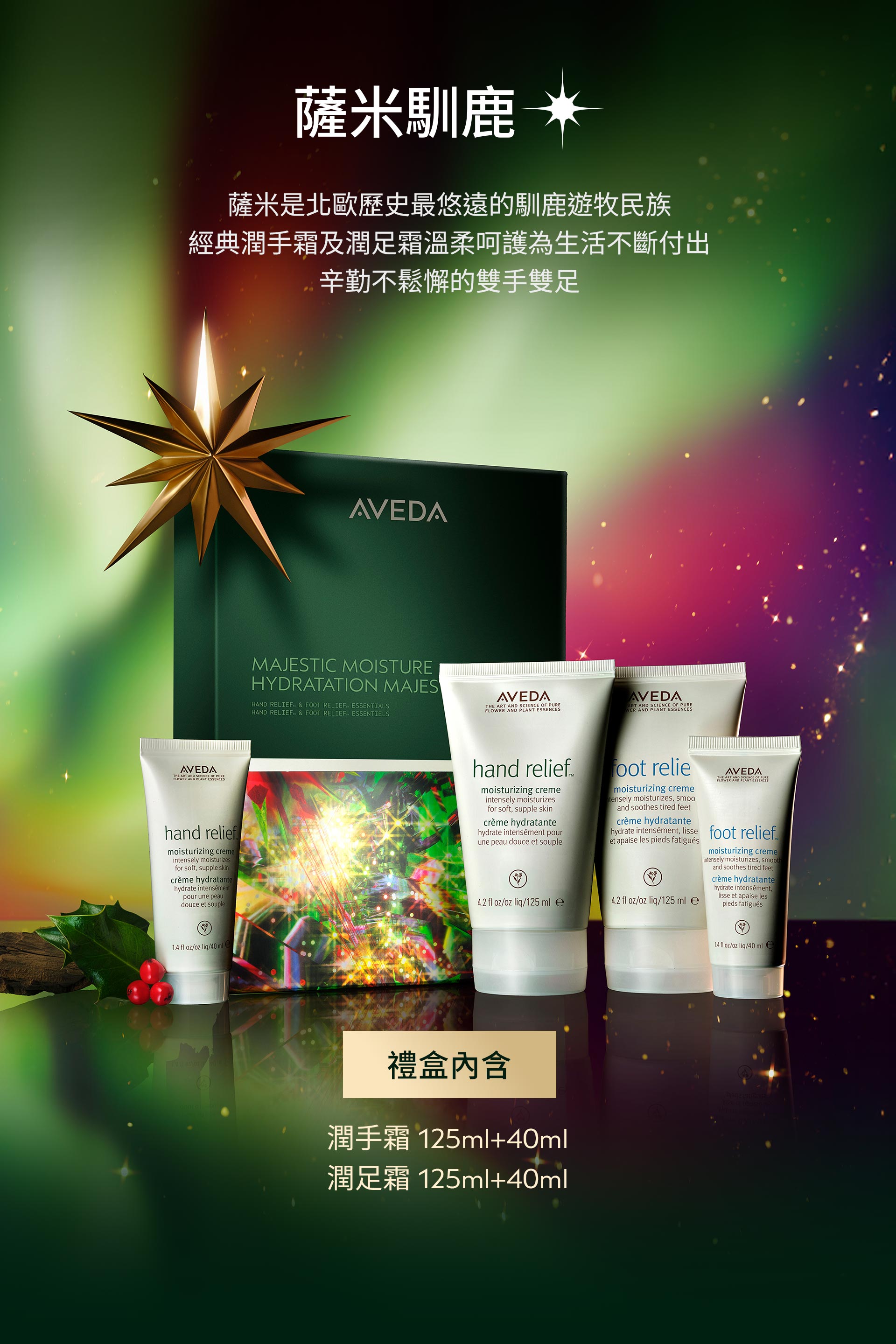 薩米是北歐歷史最悠遠的馴鹿遊牧民族,他們逐水草而居,以天地為家,與自然緊密相依。在「薩米馴鹿」禮盒中,能一次擁有AVEDA 經典潤手霜及潤足霜,溫柔呵護為生活不斷付出、辛勤不鬆懈的雙手雙足。